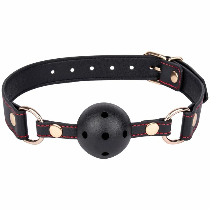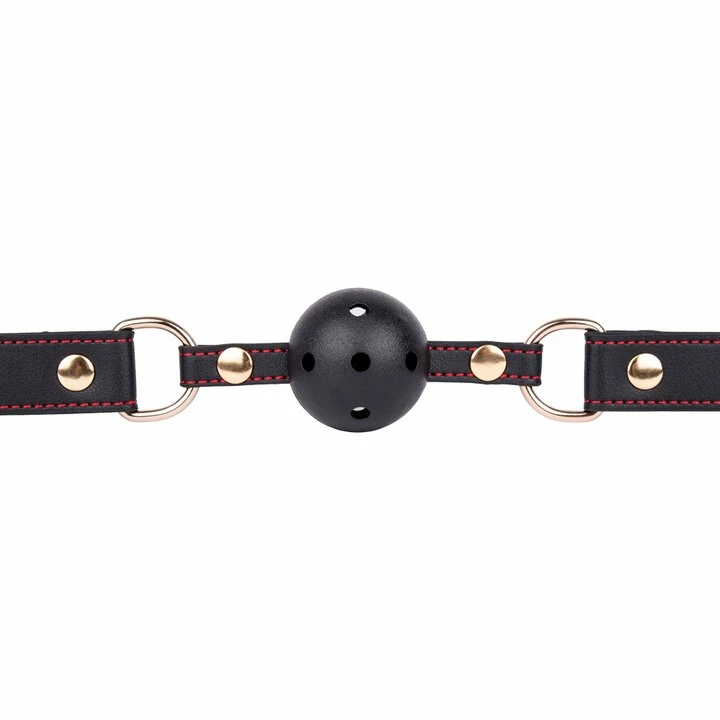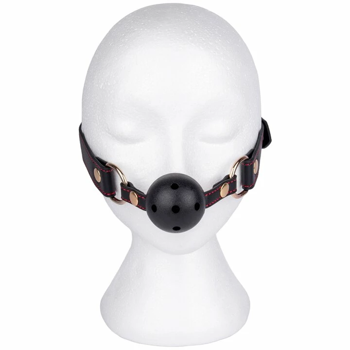 Made from sturdy vegan leather with stylish red stitching, this bondage gag lends a classic BDSM look and feel to your love games with chic gold-tone hardware for a touch of luxury.