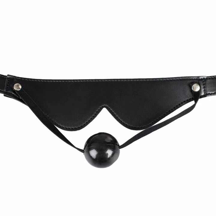 The Bondara Black Faux Leather Blindfold with Ball Gag combines two fetishes and adds extra suspense and anticipation to your play. Securely fasten the blindfold to your subβs head using the durable Velcro on the lining of the faux leather straps. The ball gag is attached to the blindfold via elasticated straps and prevents your playmate from complaining about the darkness. This BDSM essential will heighten your partnerβs senses during experimental and exciting role plays and will ensure long nights of extreme Dominance.Β