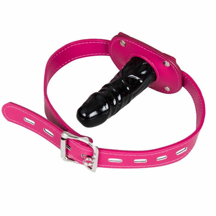 โข The adjustable pink, faux leather straps will secure the gag comfortably in place