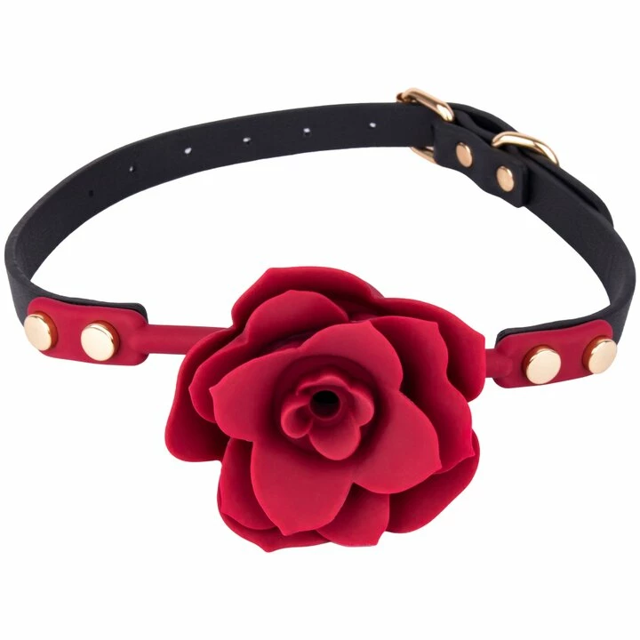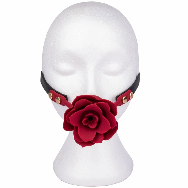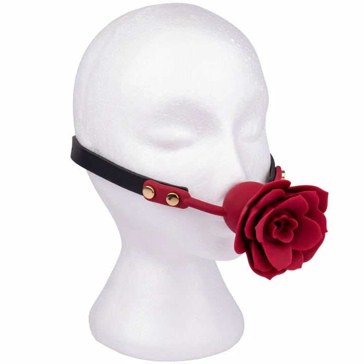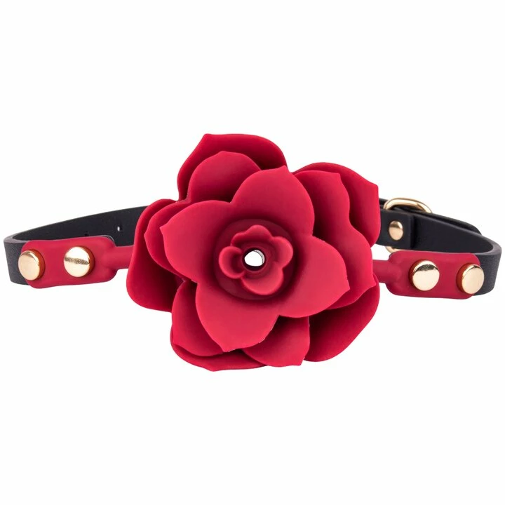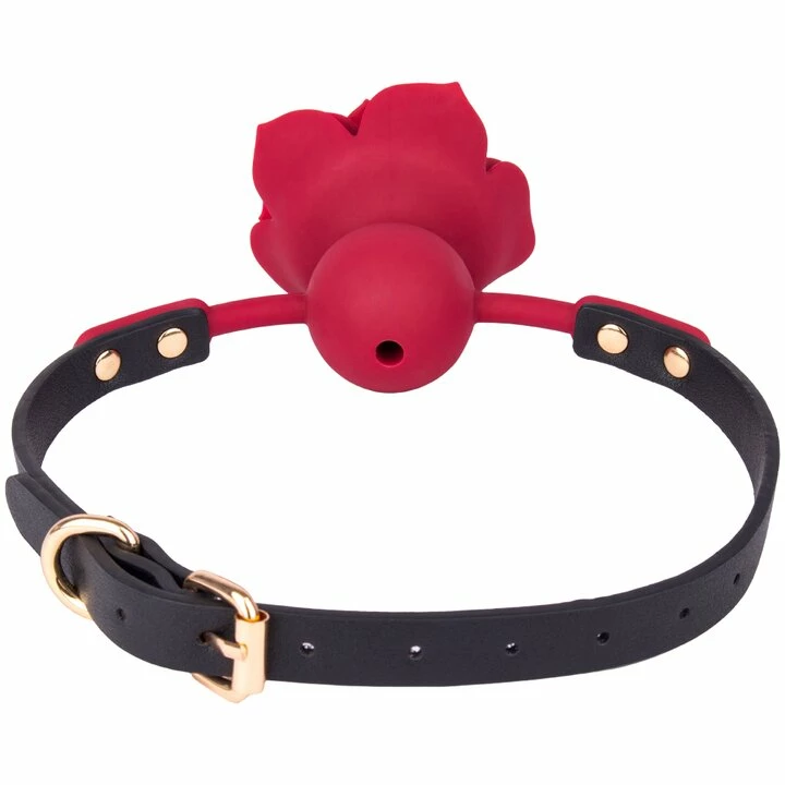 For softer, more seductive bondage, bite down on the Kiss From A Rose Silicone Vented Ball Gag by Bondara. This red silicone gag brings a touch of romance to your restraint in a three-dimensional flower design.