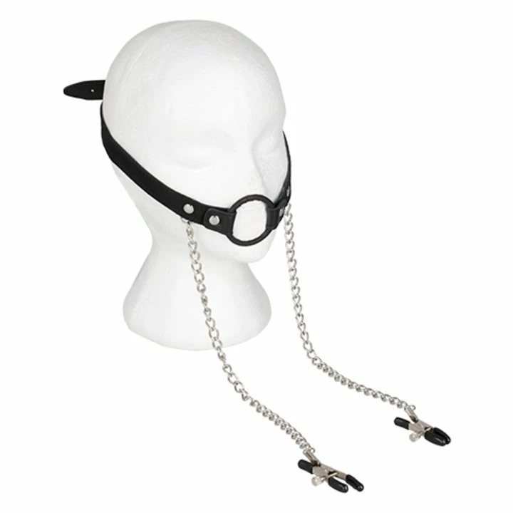 Adjust the leather straps for the best fit as you secure the buckle fastening in place. Once on, the central O-ring restricts the wearerβs speech to leave them drooling, dribbling and their mouth wide open. For a pinch more excitement, fix the nipple clamps in place and adjust the screw for the perfect level of intensity.
