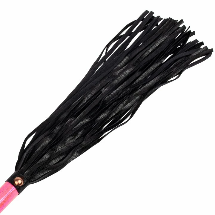 Take charge with the Pink Kink Faux Leather Rose Gold Flogger by Bondara. Lending your BDSM play a playful finish, this black and iridescent pink flogger features stylish rose gold studs on the handle for a stylish look and feel.