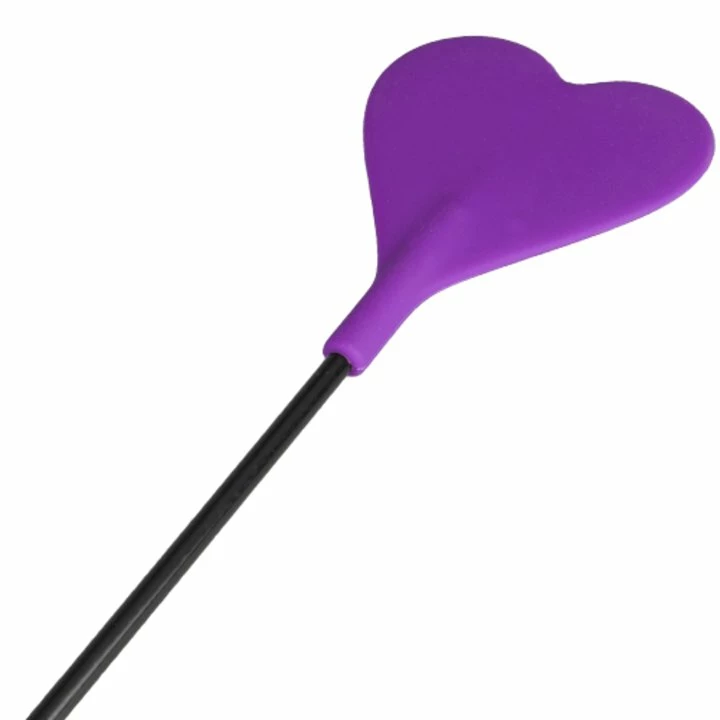 Show your partner some tough love with the Bondara Purple Silicone Heart Riding Crop. This purple crop features a flexible stem and a durable silicone tip designed to leave heart-shaped impressions on your partner. The wrist loop handle keeps you in control no matter how hard you hit and is also perfect for hanging up your spanking crop with pride.Β