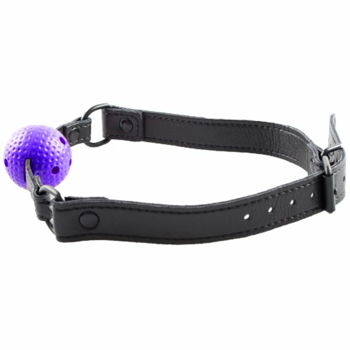 Explore verbal restraint with the Bondara Purple Vented Ball Gag. Its smaller, 1.5 inch diameter is comfortable to wear while the hollow, vented ball lets the wearer breathe more easily. Perfect for beginners, this ball gag offers bondage play with less intensity.