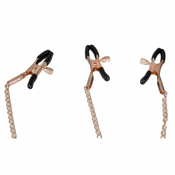 Add some rose gold to your bondage play with the Bondara Rose Gold O-Ring Nipple and Clit Clamps. The crocodile-style clamps feature rubber tips for a secure grip and each one can be adjusted for various levels of intensity.