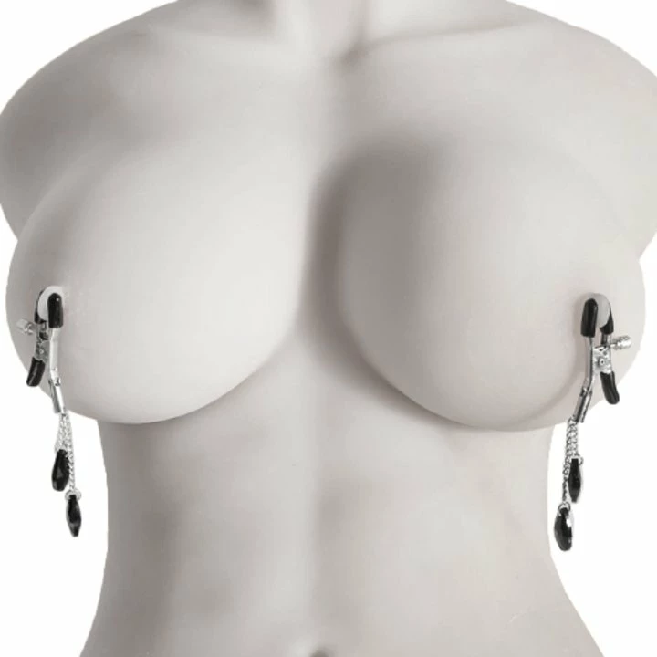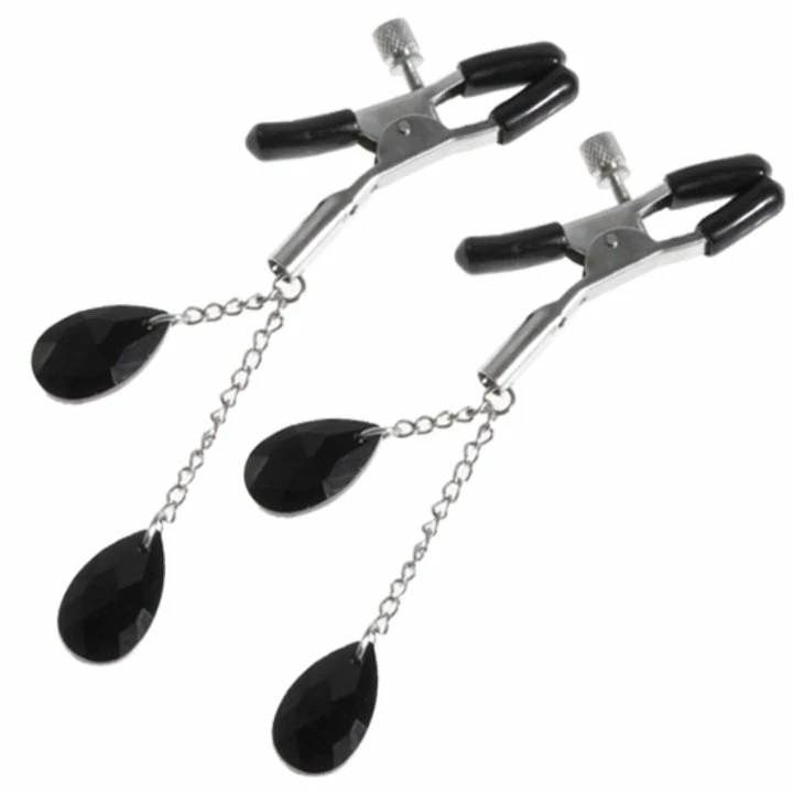 Add some decadent accessories to your nipple toy collection with this set of Onyx Gem Twist Nipple Clamps.