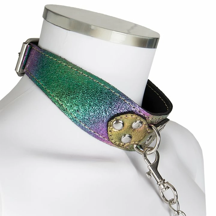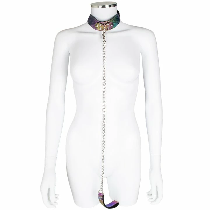Assert your Dominance and lead your playmate into all sorts of trouble with the Bondara Shiny B!tch Holographic Faux Leather Collar and Leash. Safely and securely fasten the soft, faux leather collar before you attach the metal leash to instantly become their master. Indulge in humiliating puppy play by forcing your sub to crawl next to you and obey your every command. The leash features a wrist loop handle with the same stunning holographic design that will ensure you dominate in style. Make your bondage games and devious BDSM sessions a walk in the park with the inclusion of this Bondara collar and leash.Β