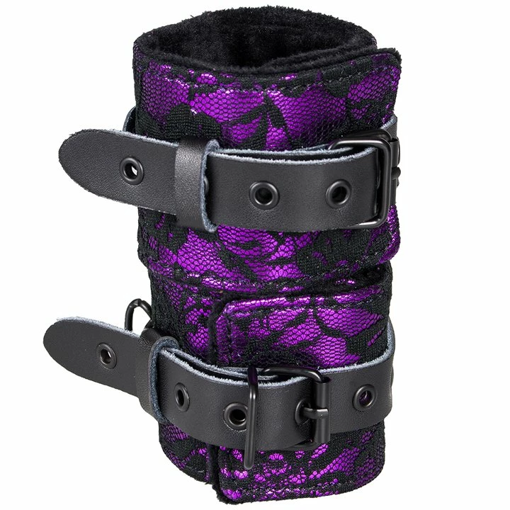 Assert your authority and let your submissive know who is in charge when you tie them up with the Bondara Soft Purple Floral Wrist Cuffs. The cuffs feature exquisite purple and black floral detail on the outside along with sturdy black straps and buckles to help find the perfect fit. Soft, black inner lining caresses the wrists and is a small comfort to your sub as they get manipulated and humiliated. A detachable, black chain connects the cuffs and can allows other bondage restraints to be attached to open up a variety of daring role play options.